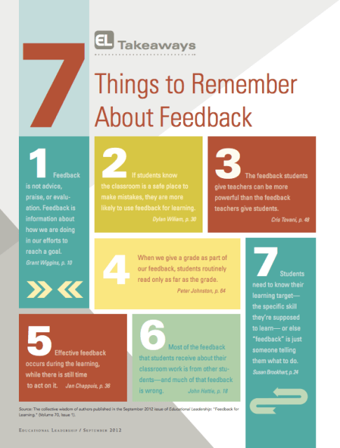 “Feedback in an assessment for learning context occurs while there is still time to take action. It functions as a global positioning system, offering descriptive information about the work, product, or performance relative to the intended learning goals. It avoids marks or comments that judge the level of achievement or imply that the learning journey is over.