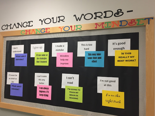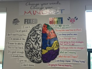 I enter a different elementary hallway and see these adorable posters and on the wall and on the lockers about training your brain. Then inside the classrooms I see the a visual supporting how to change your mindset.