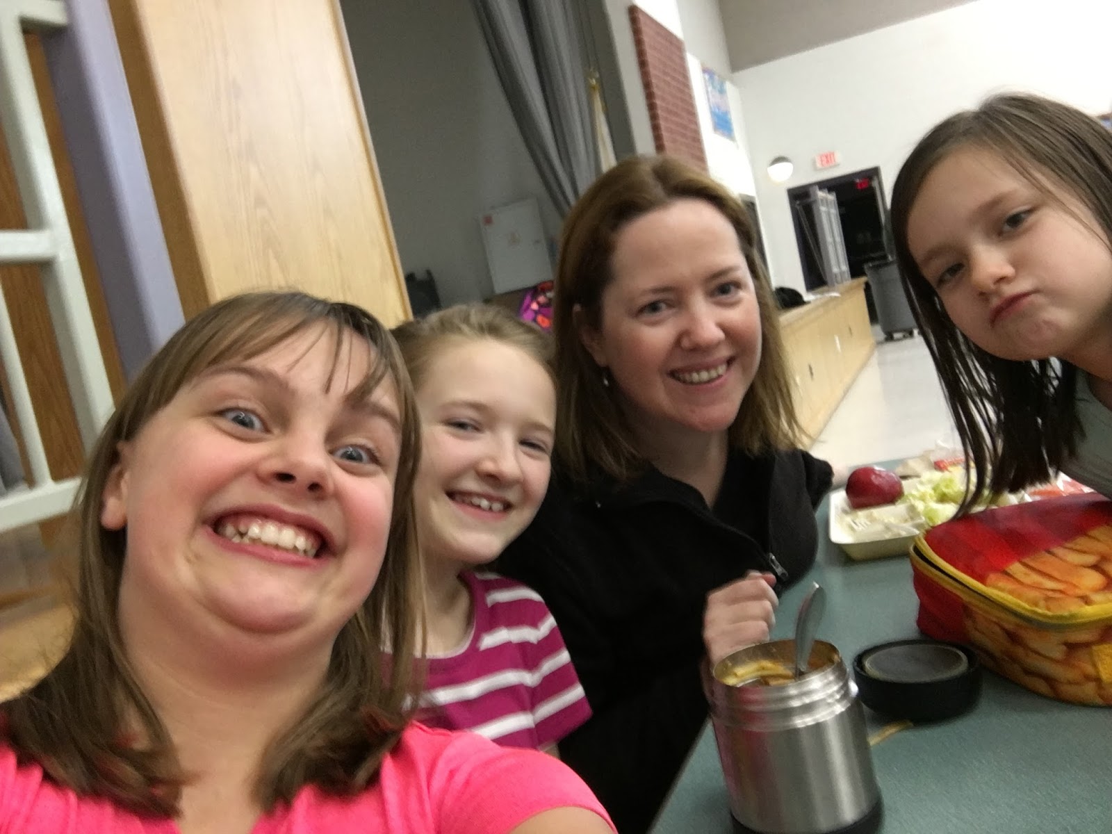 I have to admit, I was kind of excited for lunch time after learning about volcanoes, and I was about 90 min past my typical mid-morning snack. While in line, I asked the girls behind me what they recommend and what the big-seller was and they said definitely the chicken nuggets. Then when I was paying, there was a wide array of unhealthy snacks (my favorite) and I asked what the most popular one sold was and was informed that it was rice krispies treat so I went for that. I saw the students crowded around the condiment table and observed that it is normal to put as much ketchup as you possibly can into the unused portion of my tray. I also observed that we eat everything on our plate, except for the vegetable. Surprisingly, despite taking photos and talking to my new friends at the table, we did have plenty of time to eat our lunch. We had to clean up our table before we were dismissed to recess, which was about 5 minutes outside in the parking lot in the cold, without a jacket (because apparently 6th grade boys don’t wear jackets out to recess).